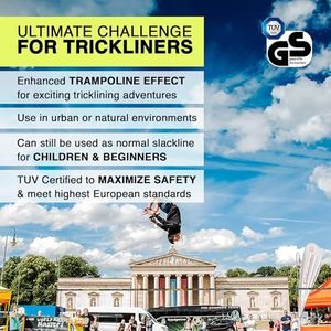 The Complete Ninja Slackline Kit by Trailblaze offers a 60-foot long polyester slackline designed for kids and adults alike, making it a versatile choice for family outdoor fun. Its length and sturdy ratchet tensioning system provide a strong, adjustable setup suitable for beginners through advanced users. The slackline's width of about 2 inches makes it fairly stable for kids learning balance, while the included wider tree protectors help safeguard trees and add a safety layer for the user.